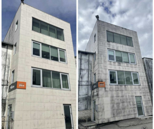 - Fasadų plovimas – valome įvairių tipų fasadus nuo purvo, dėmių ir organinių apnašų, tokių kaip samanos ir pelėsiai, taip atnaujindami pastatų išvaizdą ir padėdami išlaikyti pastato struktūrą.