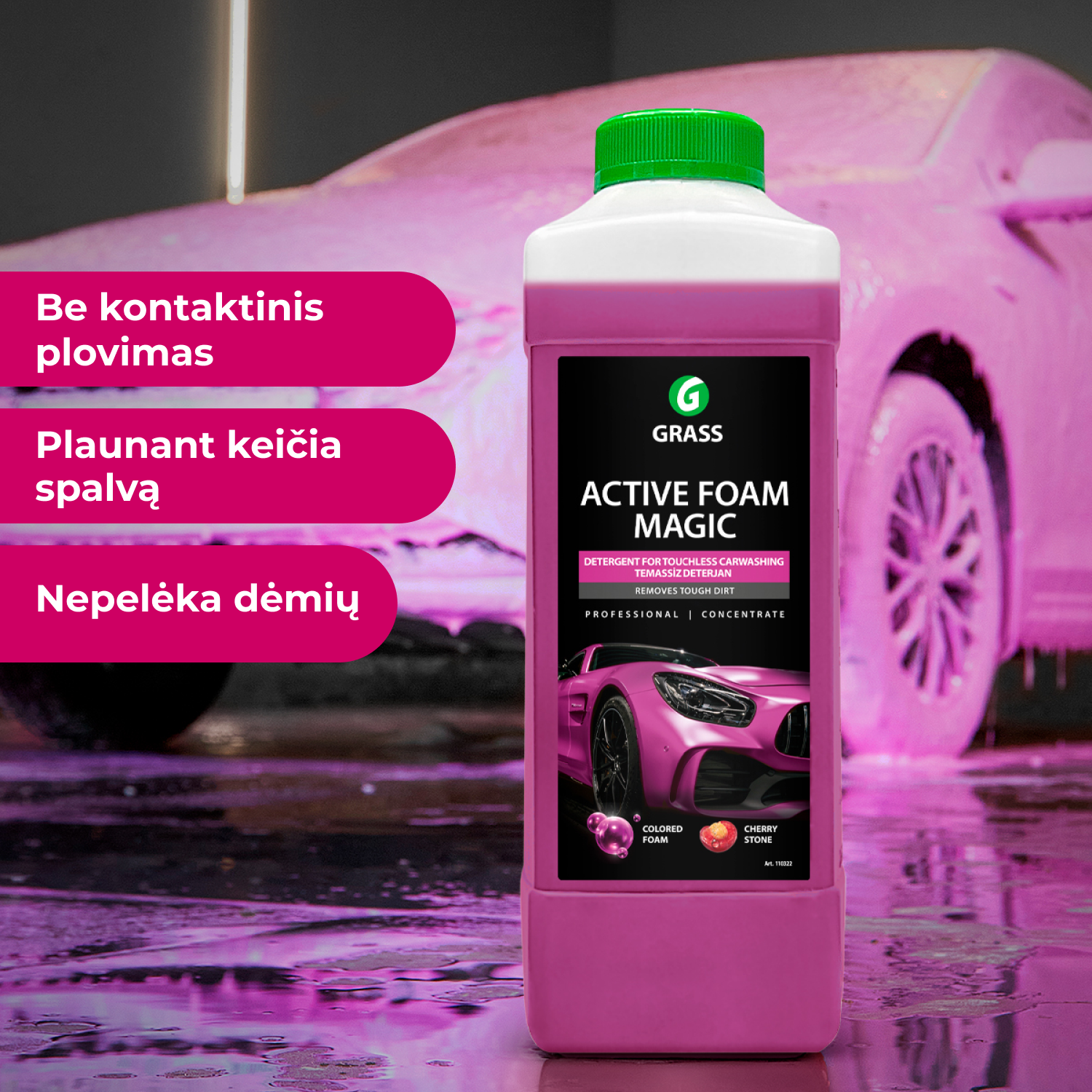 Koncentruota, gerai putojanti priemonė, skirta bekontakčiam automobilių ir sunkvežimių plovimui.