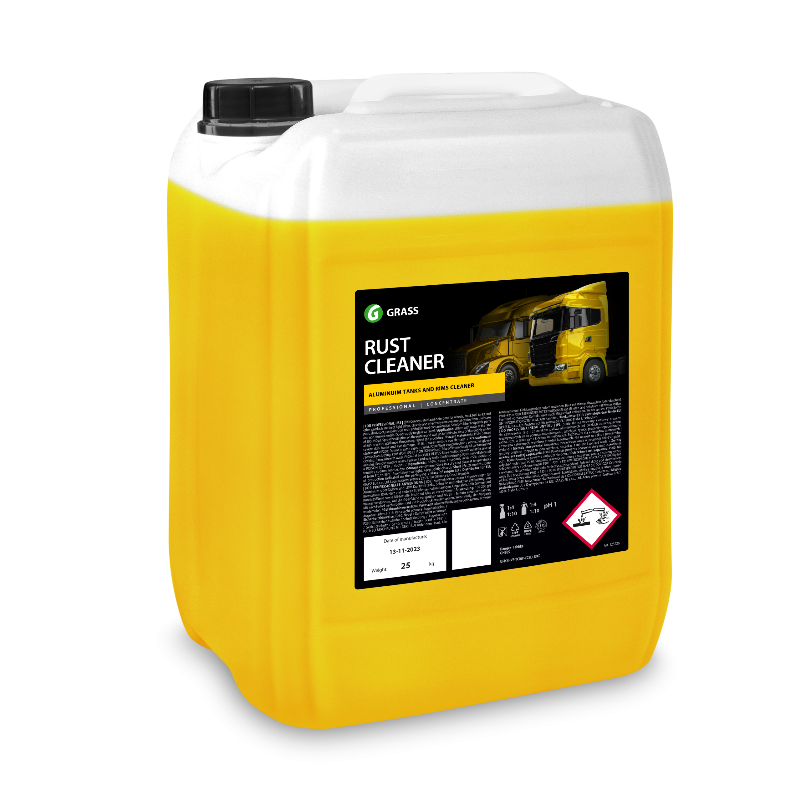 PAVOJUS! Dirgina odą ir pažeidžia akis. Naudokite gumines pirštines, apsaugines priemones. Patekus ant odos ir į akis nuplauti vandeniu. Jei reikia kreipkitės į gydytoją. Laikyti vaikams nepasiekiamoje vietoje!